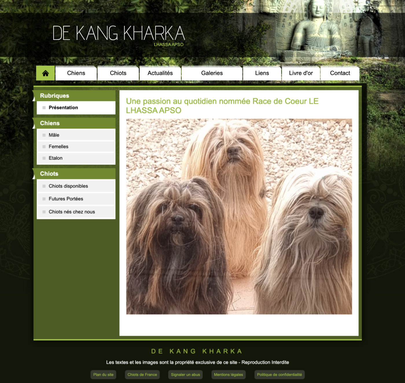 Liens Divers Eleveurs CHIEN TIP TOP https://www.chientiptop.fr/ CHIEN TIP TOP, c’est le site grand public de la Conduite Accompagnée du Chien. Sous la forme d'un quiz gratuit organisé en 6 parties, CHIEN TIP TOP permet d'éviter des erreurs éducatives fréquentes. Ce parcours nous permet de mieux comprendre notre chien et d'ajuster nos interactions avec lui, pour qu'il trouve sa place et son équilibre parmi les humains. À la Garenne aux Chayottes, on suit le Code de la bonne Conduite avec les chiens, et on encourage vivement les futurs propriétaires à poursuivre cette approche logique et bienveillante dans l'éducation de leur chiot. La Conduite Accompagnée du Chien https://www.conduite-accompagnee-chien.fr/ La Docteur Nathalie Simon, vétérinaire comportementaliste et titulaire d’un doctorat en sciences de l’éducation, a créé la Conduite Accompagnée du Chien©, une méthode d'éducation canine respectueuse, reconnue et adoptée par de nombreux professionnels : vétérinaires, ASV, éducateurs canins, intervenants en médiation animale canine, pour les chiens d’assistance ou en association de protection animale... Élevage De Kang Kharka https://dekangkharka.chiens-de-france.com/lhassa-apso De Kang Kharka, c'est l'univers d'une éleveuse experte et passionnée avec qui j'ai découvert les lhassa apso. Suzy-Chu est originaire du Tibet, mais également de Pierrefeu Du Var ! Club des Chiens Tibétains de France https://www.centrale-canine.fr/club-des-chiens-tibetains-de-france Site du CCTF, club de races des épagneul tibétain, lhassa apso, shih-tzu, et terrier tibétain. Elevage des 1001 Truffes / Lhassa-Apso https://www.facebook.com/1001TruffesRC/?locale=fr_FR En recherchant l'origine de Triskel, avec qui Suzy-chu a fait sa première portée, j'ai découvert les 1001 truffes, un super élevage familial de lhassa apso à Ercé-en-Lamée.