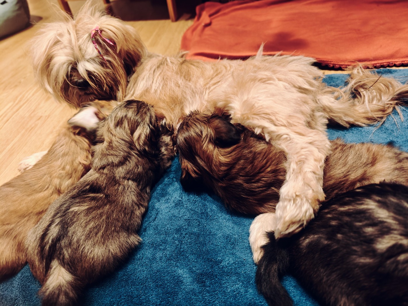 Portée de Suzy-chu et Triskel (5 chiots nés le 18/10/2025) Suzy-chu et 3 de ses chiots le 5 janvier 2026 Suzy-chu et ses chiots le 28 novembre 2025 Suzy-chu et ses chiots dans le jardin Le 24 octobre 2025